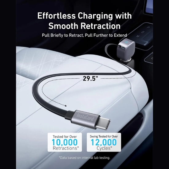 کابل جمعشونده ۲.۳ فوتی ما که با طراحی هوشمندانه ساخته شده است، از درهمریختگی داخل خودرو جلوگیری میکند و به شما این امکان را میدهد که در صورت نیاز، کابل را به راحتی جمع و باز کنید. از یک تجربه بدون دردسر و بدون سیمهای گرهخورده لذت ببرید - برای استفاده کافیست آن را بکشید و برای نگهداری جمع کنید.