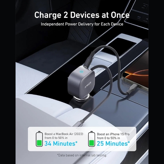 شارژر ۷۵ واتی فندکی انکر Nano با کابل جمع شونده مدل Anker Nano A2738